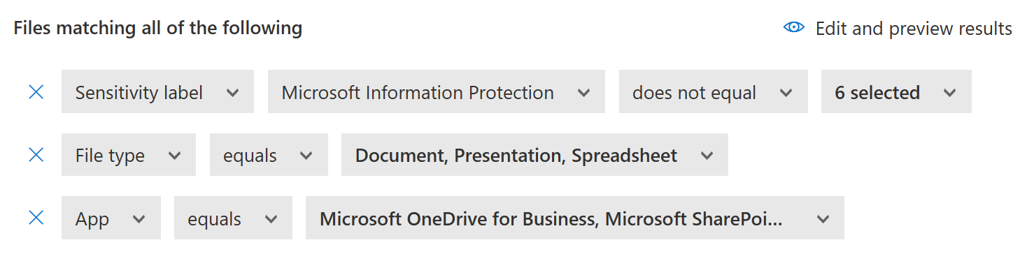 • Sensitivity label (Microsoft Information Protection) does not equal [choose all published labels]