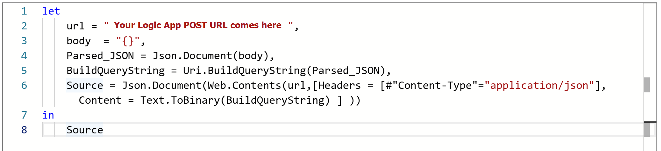 - It should be possible to include some specific identifying attributes in your Power Query request’s body or in the POST URL itself that you could then configure the Logic App’s trigger conditions to look for before executing its actions. This should provide some extra fortification against POST URL misuse, should someone get their hands on it by itself.