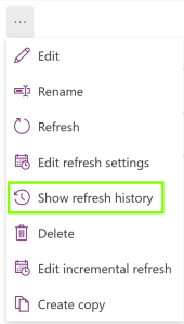 You can use the Show refresh history option to dig into previous runs and perform troubleshooting, if necessary.