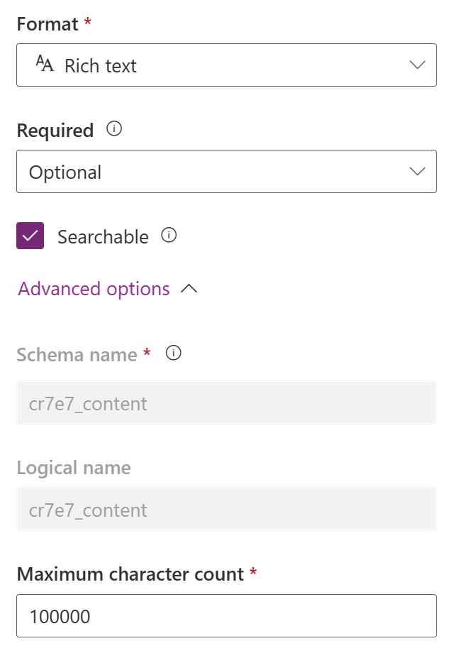 As I created the columns, I made sure to choose a fitting Data type and ensured that any text fields intended to store large amounts of content had a high enough maximum character count for all eventualities.