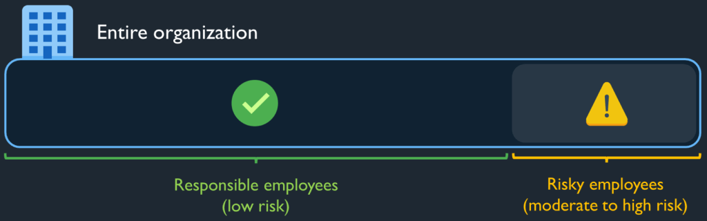 - Negligent employees likely make up the bulk of your insider risk today – as much as 99% or even 99,9%+ of all risky insider events could be driven by negligence depending on the size and profile of your workforce.