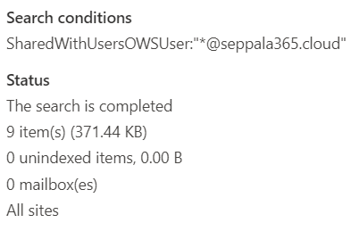 From the results of the search, we get a rough idea of the SharePoint sites and OneDrive drives on which shared content has accumulated. Governance actions still need to be taken separately from other tools.