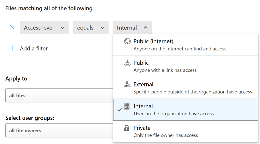 A useful side benefit is that you can easily tune an existing discovery-only file policy to remove all sharing links to discovered files if you determine this is necessary.