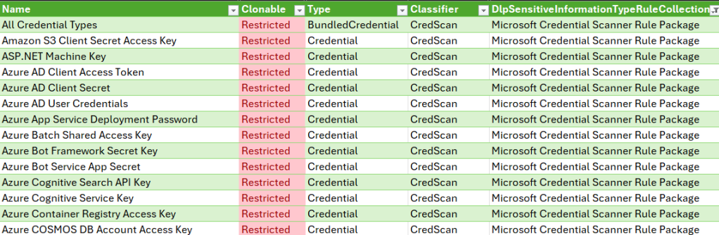 ⚠️ Not every single credential SIT is contained in this rule pack. Some, like Azure Storage Account Key are located in the Microsoft Rule Pack instead, letting us access their definitions directly. The logic behind this split isn’t yet clear to me.