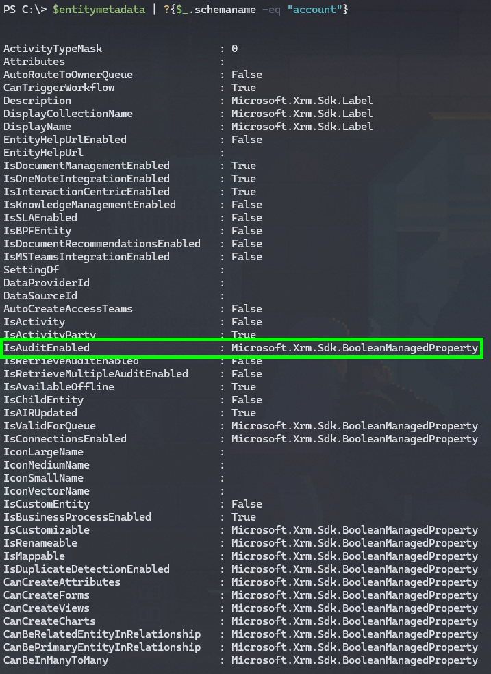 $entitymetadata | ?{$_.schemaname -eq "account"}